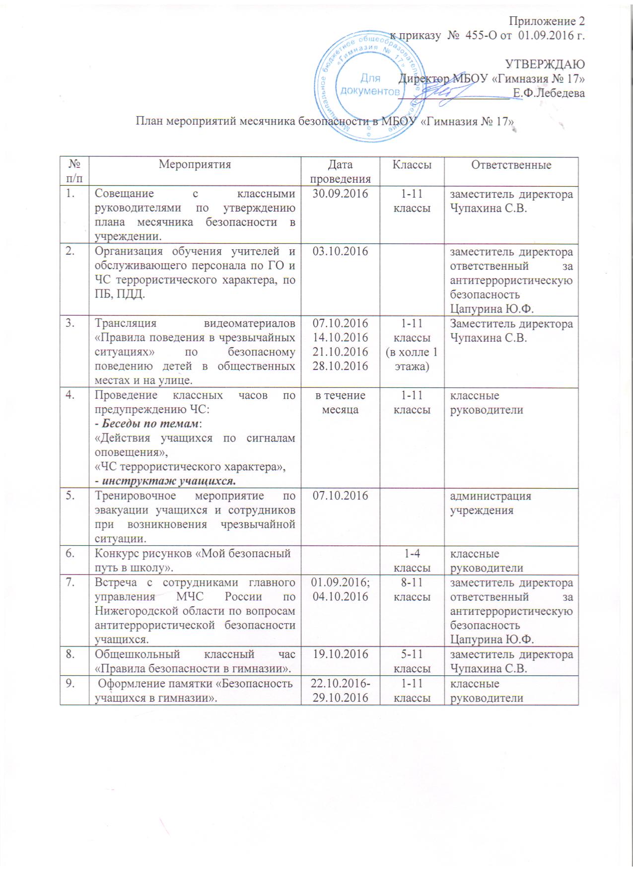 С 3 октября по 3 ноября в гимназии проходит месячник безопасности согласно плану работы на 2016-2017 учебный год.